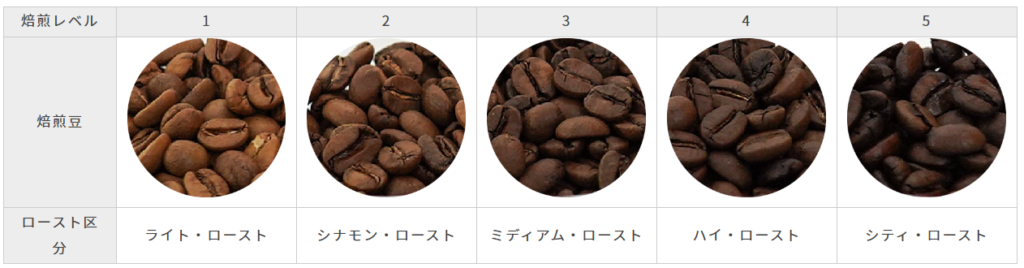 5段階で焙煎度合いを選べます 最新機種は8段階選べるようです